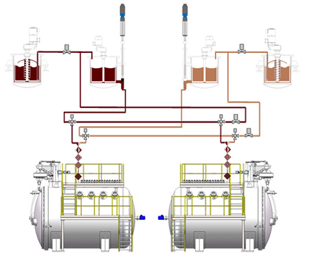 | 工藝流程 ● 原料上料 ● A/B組份配料 ● 脫氣備料 ● 真空儲料 ● 計量輸送 ● 靜態(tài)混料 ● 真空澆注 ● 壓力浸滲 | 工藝控制 ● 電氣控制● 稱量系統(tǒng) ● 計量系統(tǒng) ● 真空系統(tǒng) ● 加熱、冷卻系統(tǒng) ● 清洗系統(tǒng) | 系統(tǒng)特色 ● 無塵解袋,保護環(huán)境● 連續(xù)供料,連續(xù)生產 ● 薄膜脫氣,高效節(jié)能 ● 伺服計量,配比精準 ● 靜態(tài)混料,即需即混 ● 真空澆注,加壓浸滲 ● 工藝參數(shù),配方管理 ● 智能控制,輕松生產 | 選配功能 ● 配比在線監(jiān)測● 對接MES系統(tǒng) |