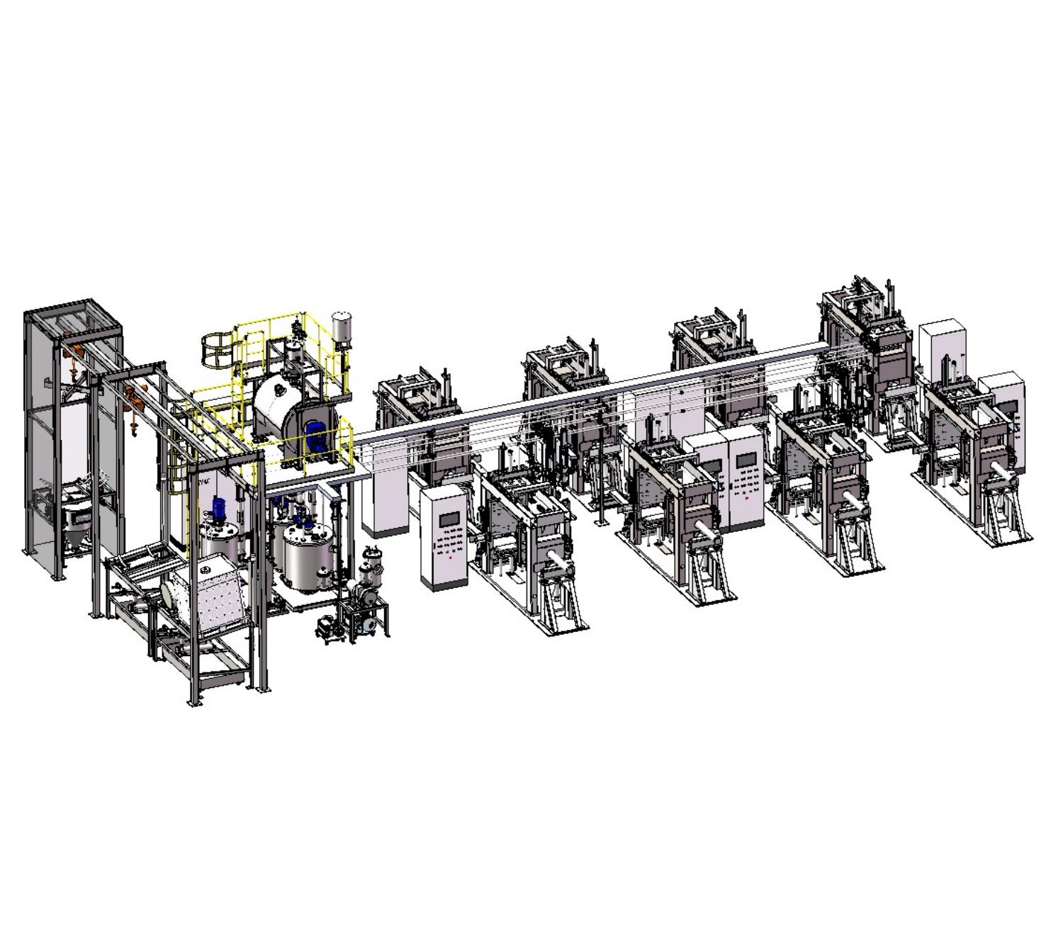 vAPG系列靜態(tài)混料直注系統(tǒng)專用于絕緣子、絕緣盤、固封極柱、觸頭盒、穿墻套管、電流/電壓互感器等中高壓產(chǎn)品的自動壓力凝膠生產(chǎn)。對澆注材料的上料、備料、混料、澆注、壓力補(bǔ)縮凝膠等整個工序進(jìn)行集中控制。對不同模具澆注工藝配方化管理,實(shí)現(xiàn)自動化生產(chǎn)、提高生產(chǎn)效率及產(chǎn)品合格率。系統(tǒng)采用全自動真空在線配料或全自動真空批次配料兩種方案,實(shí)現(xiàn)直接將材料按配比注射到成型機(jī)模具內(nèi),分多段速度、分多段壓力進(jìn)行澆注,再由補(bǔ)縮裝置進(jìn)行壓力凝膠??筛鶕?jù)客戶的產(chǎn)能、材料配方、生產(chǎn)工藝,為客戶量身定制,滿足客戶個性化需求,實(shí)現(xiàn)自動化、智能化生產(chǎn)。